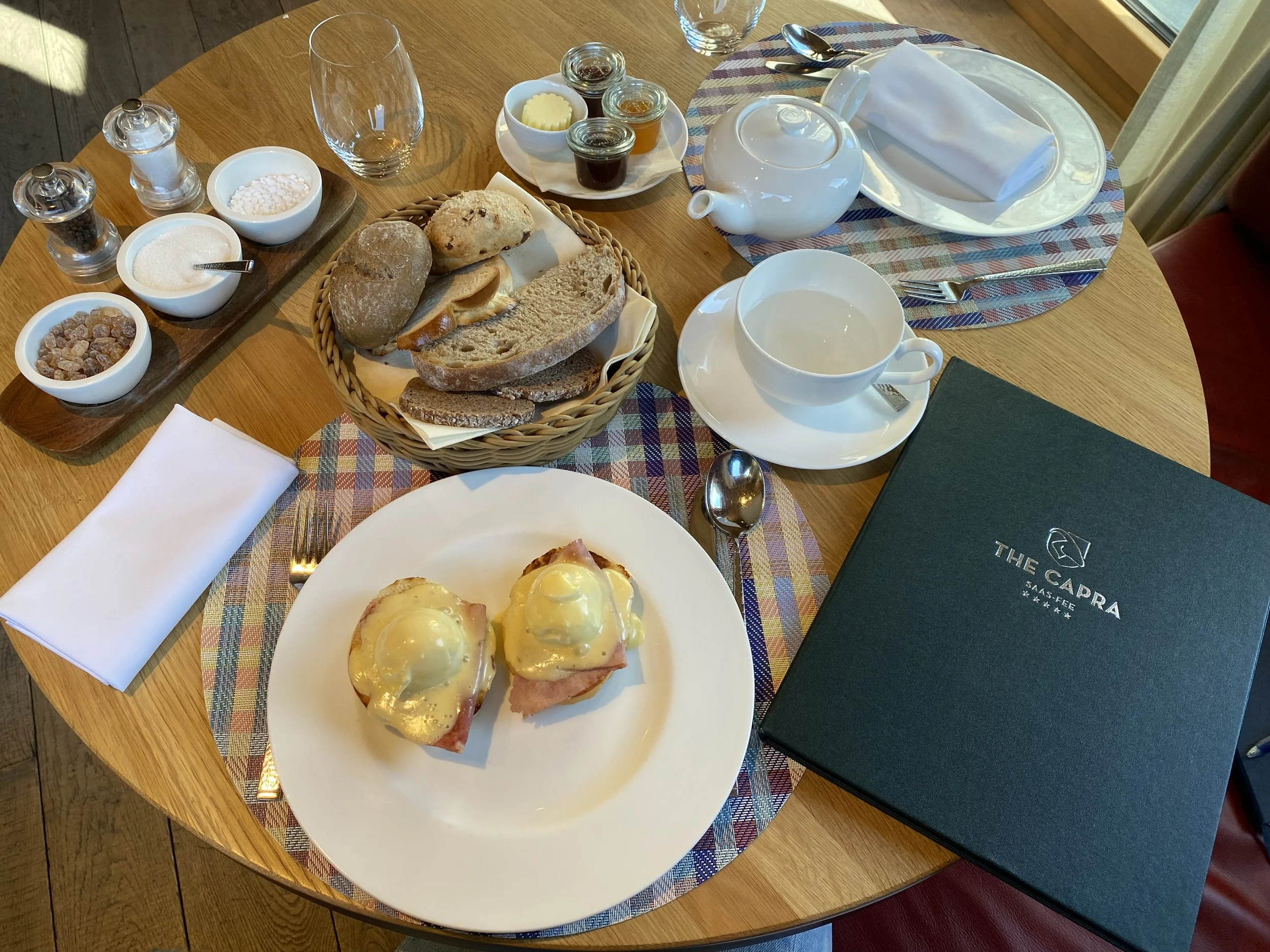 Brasserie 1809 at The Capra welcomes visitors and hotel guests alike for modern alpine cuisine in an upscale yet relaxed atmosphere. The menu offering is local, comforting, and elevated, in true Swiss style. The knowledgable staff can create expert pairings from the hotelโs wine cellar, which features a selection from around the world as well as regional varieties which were a personal favorite of mine.